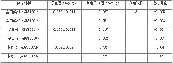 采用濕式消解對食品樣品進(jìn)行處理,原子熒光光譜儀對樣品溶液進(jìn)行測試,測試結(jié)果準(zhǔn)確可靠,滿足疾控行業(yè)測試要求。