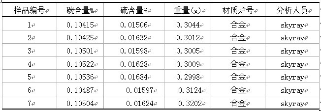 試驗(yàn)數(shù)據(jù)表明:高頻紅外碳硫儀CS-168型測(cè)試有色金屬及合金中的碳硫含量,結(jié)果準(zhǔn)確,且重復(fù)性好,簡(jiǎn)單,快速??梢詮V泛的應(yīng)用在各種各樣的合金樣品中。